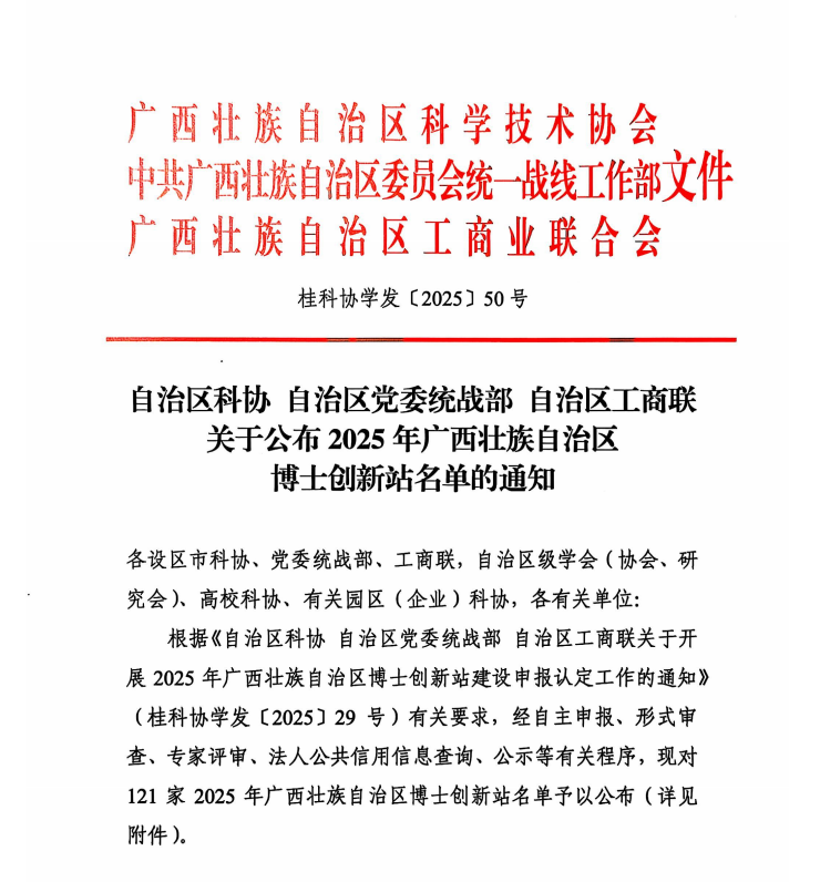 根据自治区科协、自治区党委统战部、自治区工商联联合发布的《关于开展2025年广西壮族自治区博士创新站建设申报认定工作的通知》(桂科协学发〔2025〕29号)精神,经过联合申报、形式审查、专家评审、公示公告等程序,广西民族大学科技史与科技文化研究院汪常明博士与广西藤瓷中和瓷器有限公司凭借扎实的科研实力与创新潜力,成功获批2025年广西壮族自治区博士创新站。这标志着汪常明博士团队与广西藤瓷中和瓷器有限公司在科技研发与产学研协同创新方面,特别是在传统技艺的科技赋能与文化遗产保护领域,获得了省级权威认可。